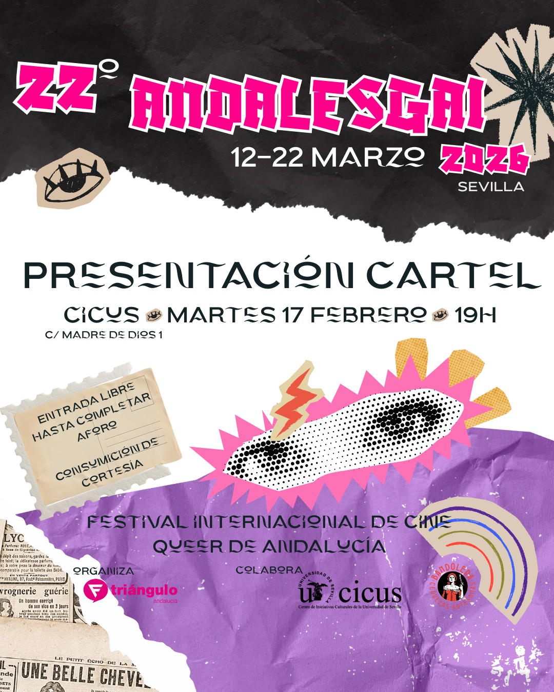 Descubre la narrativa detrás de las capas del cartel junto a sus creadorxs, sin IA. Un avance de la programación y actividades paralelas. Al finalizar, te invitamos a una cerveza BANDOLERA. 17 Feb · 19h · CICUS